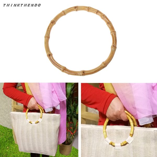 thinkthendo fashion new 1 pc round bamboo bag handle for handcrafted handbag diy bags accessories high quality, Black