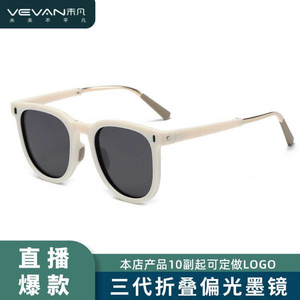 third generation foldable under the focus portable beige frame sunscreen sunglasses female powder blusher glasses male live broadcast, White;black