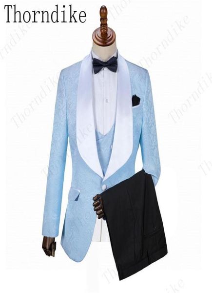 thorndike mens fashion big shawl lapel 3 pieces set pink red blue white wedding groom suits quality jacquard banquet tuxedo men09599160, White;black