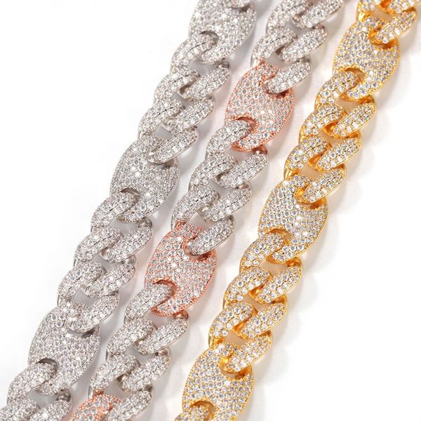 three color hip-hop men's bracelet full ziron cuban chain necklace, Black