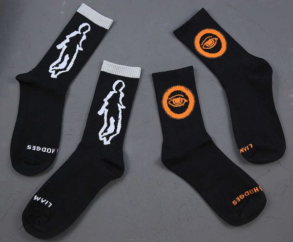 three pairs of shadow alien orange eyes cotton sports tube street trend socks for men and women, Black