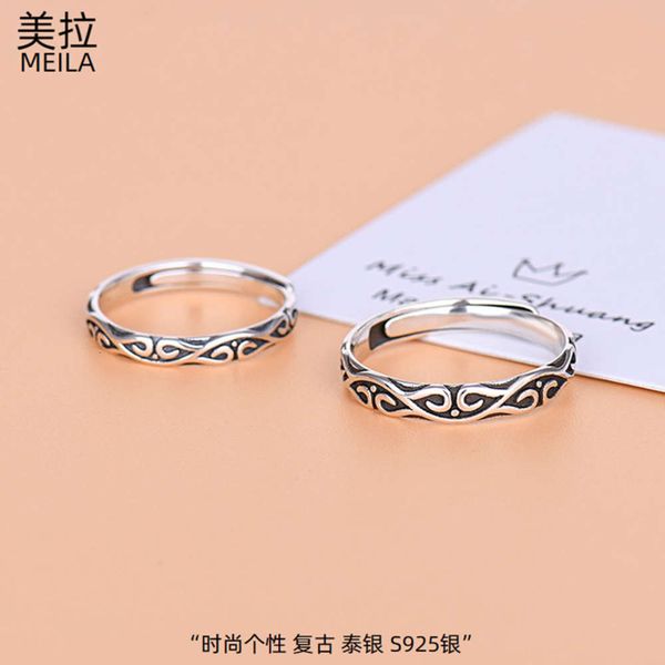 tight 925 pure silver opening personality ins tiktok net red couple ring, Black