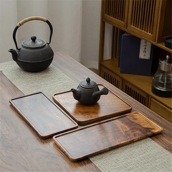 Walnut Wood Tea Tray Fruit Bread Storage Tray Rectangular Serving Tray Kitchen Decorative Food Container Japanese Dinner Plate