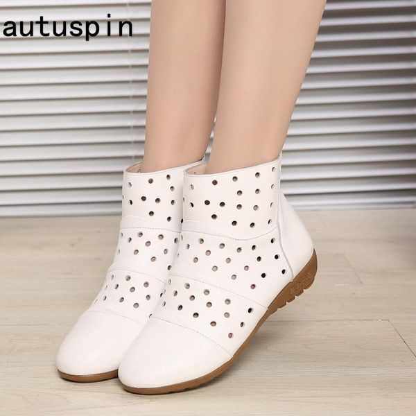 autuspin fashion flat with women's boots genuine leather ankle boots new arrivals ladies office work casual flat shoes plus size, Black