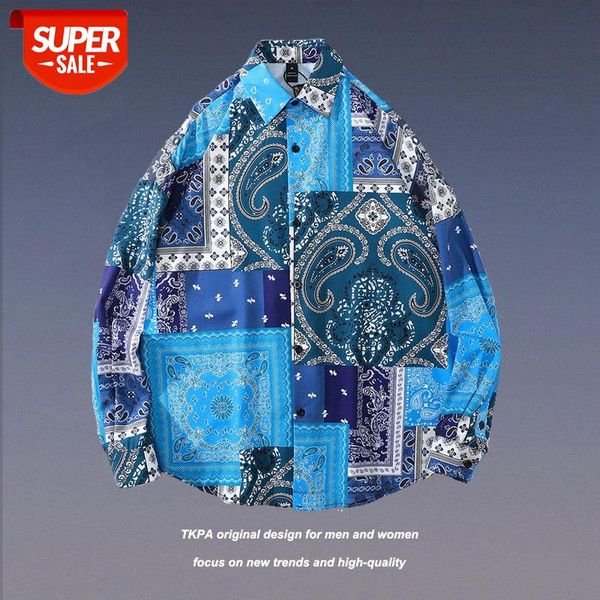 tkpa retro cashew flower full printed long sleeve shirt men's loose casual couple jacket beach #ba4i, White;black