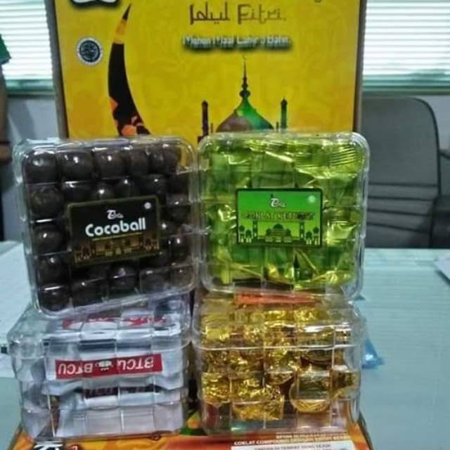 Ready Coklat Tobelo Assorted Lebaran. Coklat Compound isi rice crispy dengan cita rasa yang lezaatt dengan harga yang ekonomis. 1 Dus isi 4 Toples : *Coklat bentuk Ketupat isi Rice crispy *Cocoball l, coklat bulat isi Rice Crispy *Coklat Kurma, Coklat dengan isian kurma didalamnya *Chokonut, coklat isi selai kelapa . silahka d order gaes. harga ekonomis