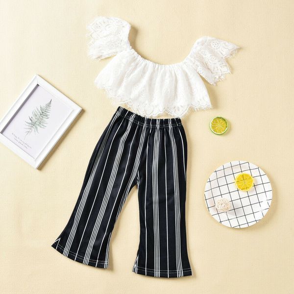 toddler baby дети девушка кружева топы в полоску свободные брюки 2шт. наборы одежды одежда, White