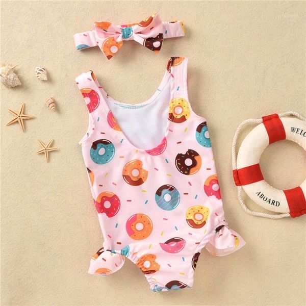 toddler baby girls donut bathing suit ruffles crab beachwear swimwear+headbands women's swimsuit for 2021 one-pieces, Black