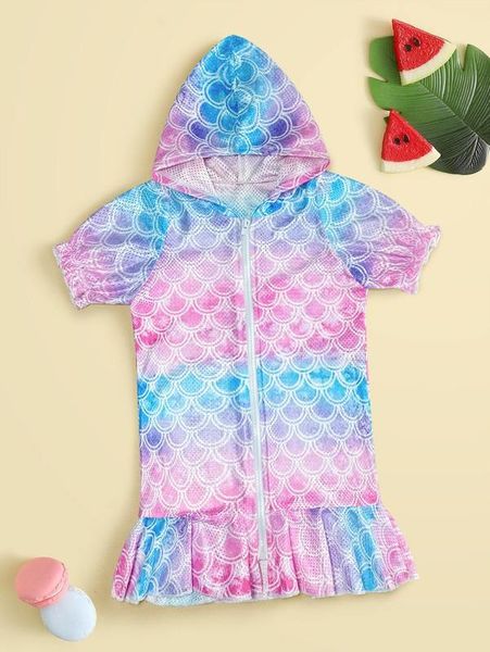 toddler girls fish scales zip front ruffle hem kimono she, Black