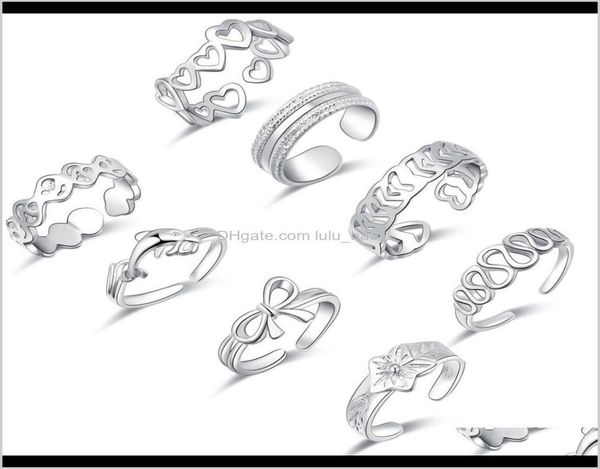toe rings body jewelry 8 piece foot set small tail bow dolphin love shape hawaiian jewelry gqelq toe rings7920877, Silver