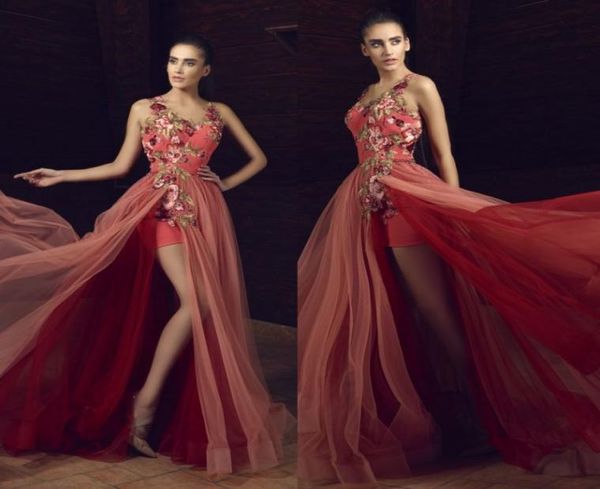 tony chaaya 2017 side split prom dresses v neck flower embroidery formal evening gowns sweep train party dress1066395, Black