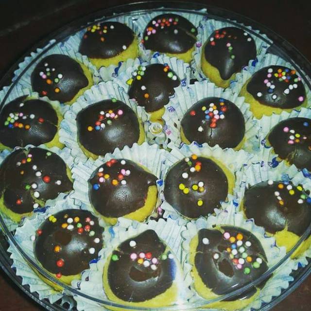 kuker toping coklat terbuat dari tepung terigu, coklat, margarin, gula dan lain lain. halal, tanpa pengawet dan ramah dikantong. ini homemade yah. rasanya in sya allah memanjakan lidah para pelanggan.