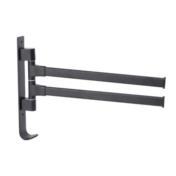 towel racks 1pc rack rotatable bathroom wall hanging punch-storage (black with 2 bars)
