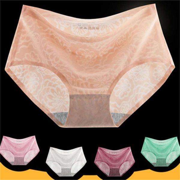 traceless ice women's underwear cotton crotch jacquard middle waist student's briefs girl, Black;pink