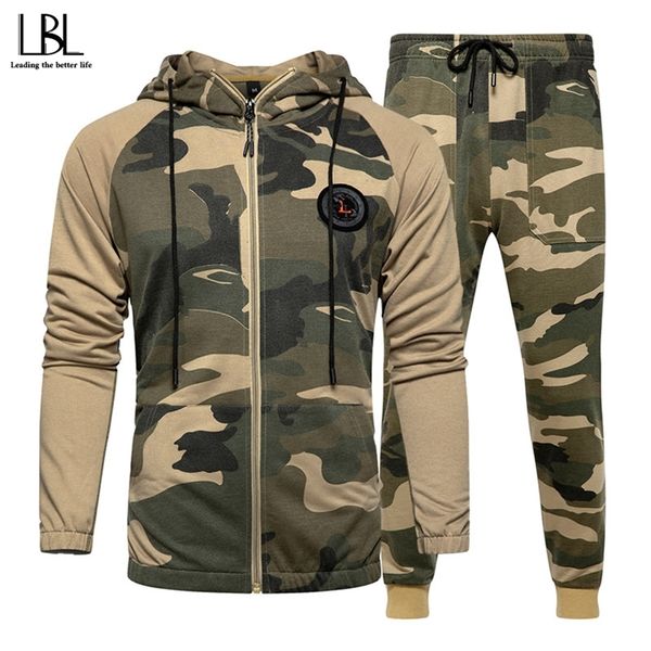 tracksuit men camouflage sportswear mens set outwear spring autumn hooded jacket + pantsuit male 2 pieces fitness clothing 4xl