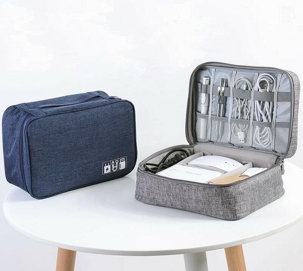 travel universal digital usb data cable power bank charger organizer storage bag3173332, Blue;pink