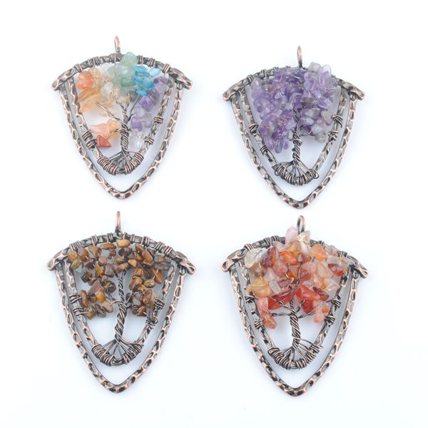 tree of life pendulum shield pendants antique copper wire wrapped 7 chakra natural stone chips beads bn420, Silver