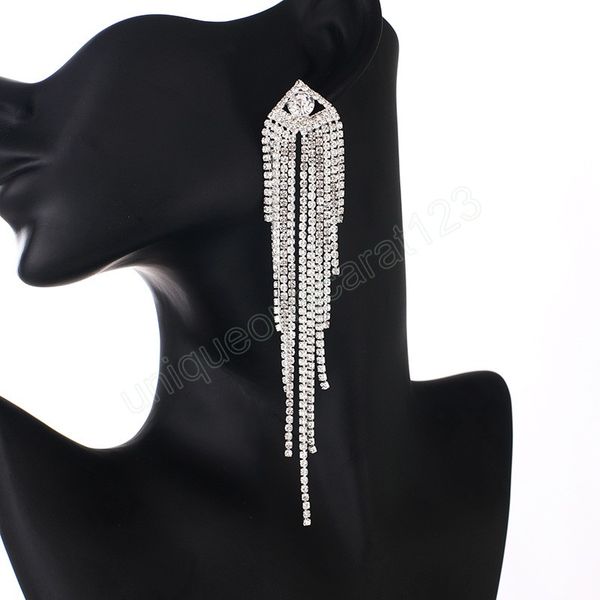 trendy metal rhinestone geometric tassels dangle earrings wedding banquet creative jewelry women's elegant accessories, Silver