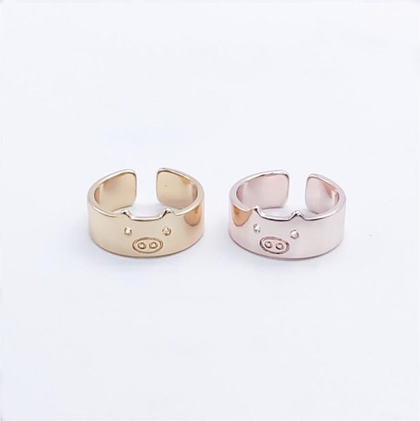 trendy pig ring fixed size flat opening design lovely cartoon animal series suitable for women and men7749312, Golden;silver