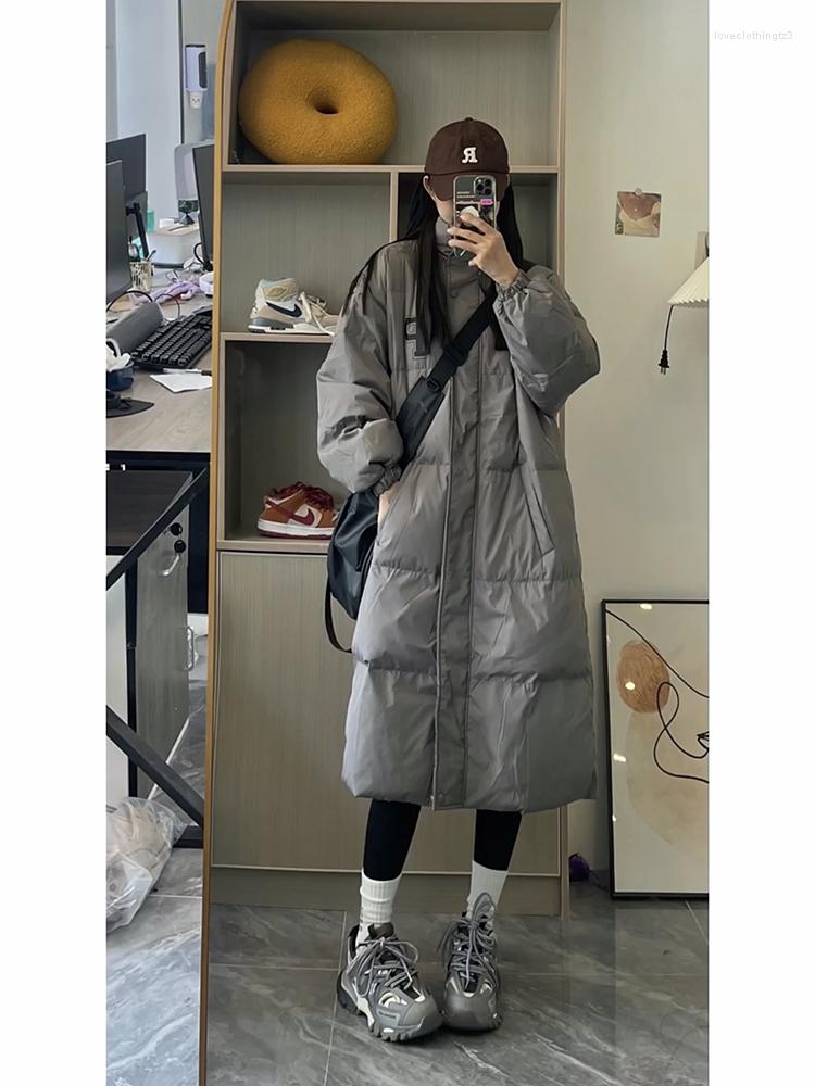 Women' Trench Coats Winter Grey Long Down Jacket Women Korean Thicken Warm Bubble Coat Oversized Loose Puffer Outerwear Fashion 2023 Parkas, Gray