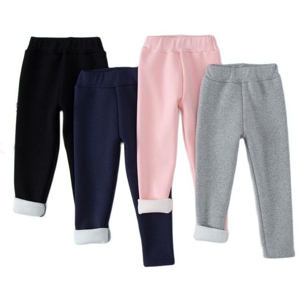 trousers children autumn winter pants baby 3-10 years kids warmth and velvet thickening leggings solid color girls elastic waist, Blue