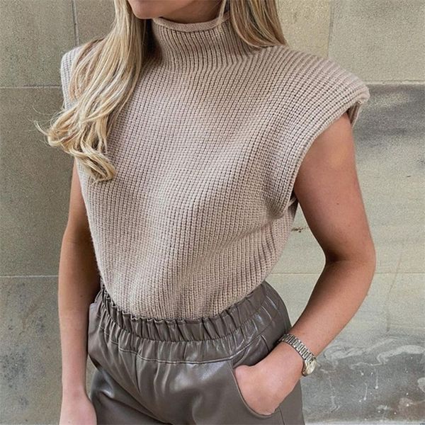turtleneck sleeveless women knitted vest sweater white shoulder pads pullover knitted vest autumn winter casual jumper y201128, White;black