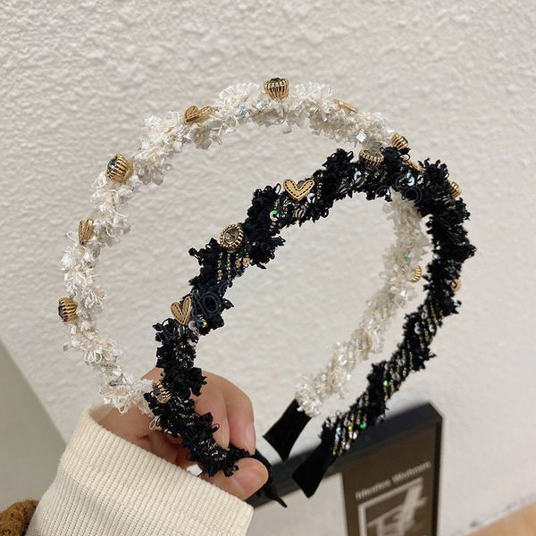 tweed rhinestone thin side headbands fashion hair accessories women trend casual temperament hairband hair band girl headwerar, Slivery;white