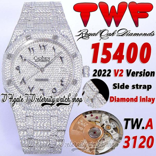 twf v2 tw15400 a3120 automatic mens watch paved diamond arabic dial stainless steel side with diamonds bracelet super edition eternity jewel, Slivery;brown