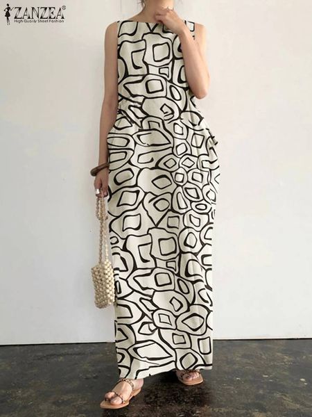 two piece dress gaun maxi wanita motif bohemia zanzea jubah tanpa lengan elegan panjang saku pantai musim panas 2023 kaftan tank kasual 2304, White