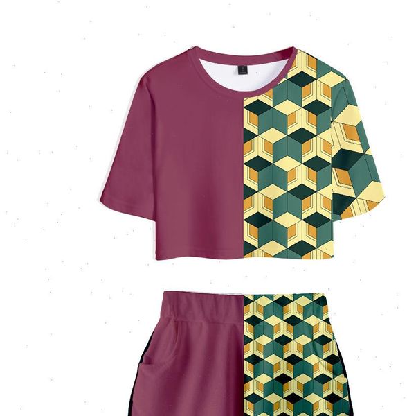 two piece outfits japan anime women tracksuits slayer kimetsu no yaiba 3d print 2 set crop and shorts tracksuit, Gray