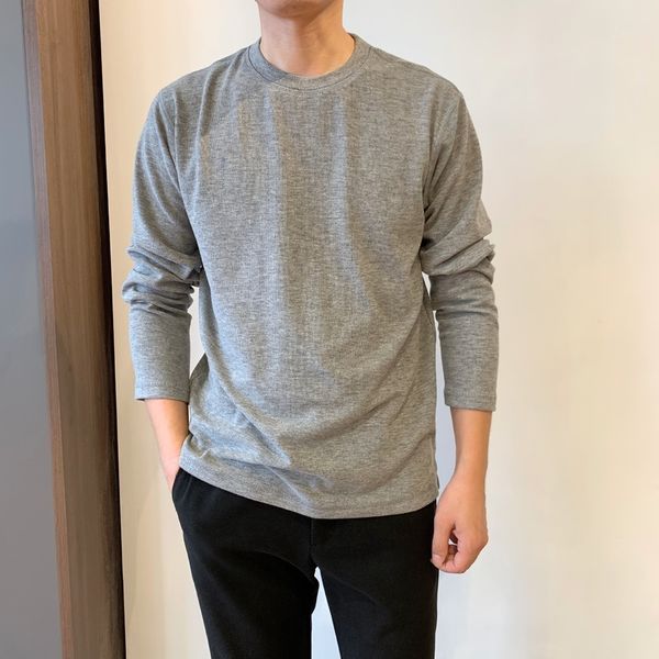 tx2536 ~ autumn and winter men's wang brand soft waxy cashmere composite ground semi high round neck long sve t-shirt, White;black