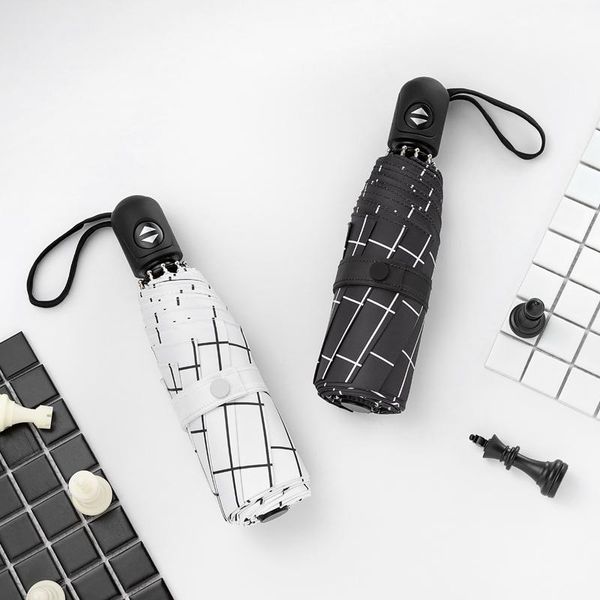 umbrellas plaid sun umbrella rain women windproof full automatic parasol uv protection pocket five folding a5a