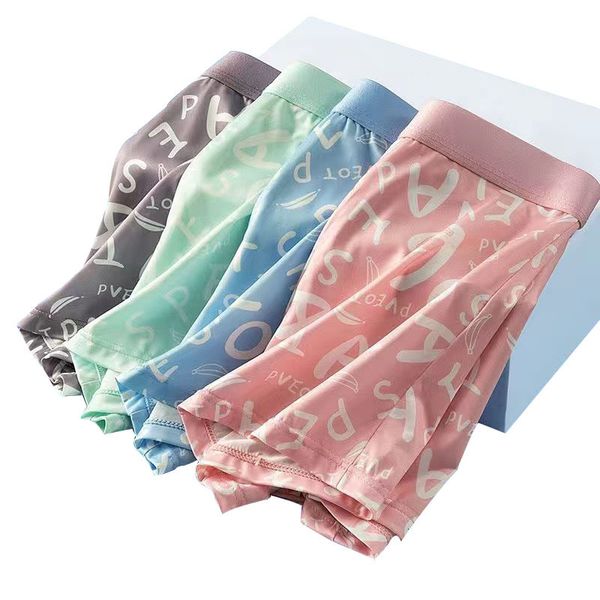 underpants men's fashion underwear summer antibacterial underwear ice silk men's printed boxing shorts breathable and elastic men&, Black;white