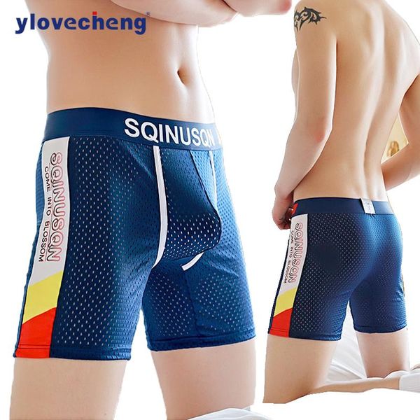underpants pattern men's ice silk lengthened underwear boxer comfortable breathable mesh cool pants, Black;white