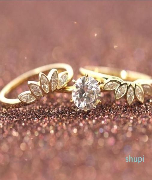 unique leaf design 18k rose gold and silver white sapphire diamond wedding engagement ring set size 5124006495