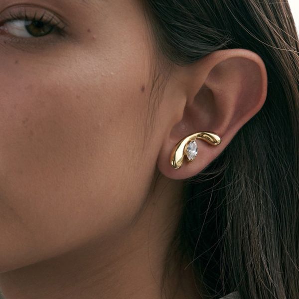 unsymmetrical diamond earrings, cool style, light luxury, simple and smooth earrings, Golden