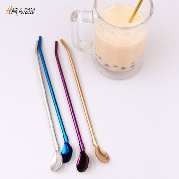 us stock creative beverage sand ice mixing spoon 304 stainless steel straw spoon mate teaspoon coffee spoon drinking straw fy4147 hm22