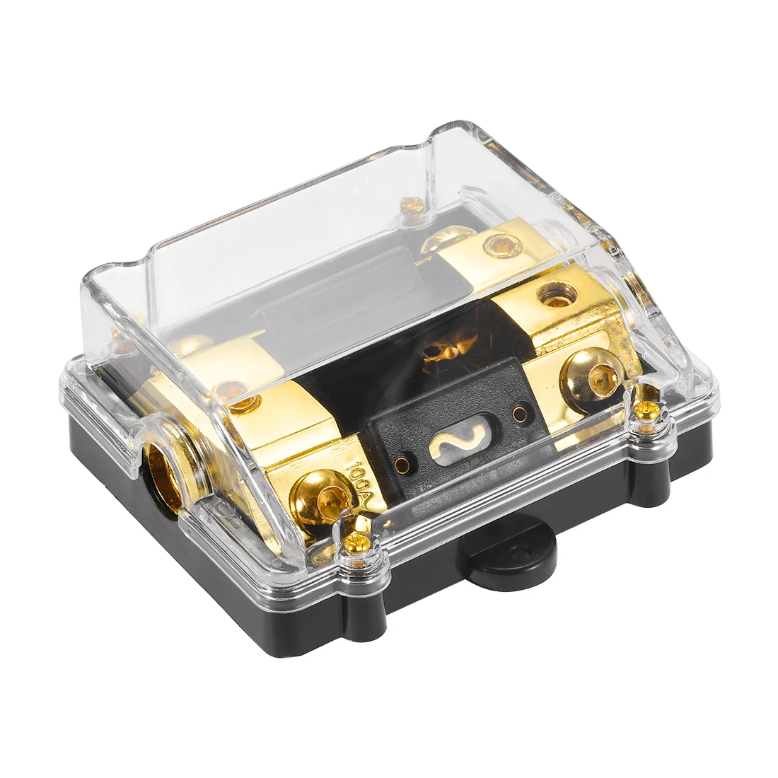 uxcell Inline ANL 1 in 2 Fuse Holder 0 2 Gauge Distribution Block with 100A Fuse Durable High Temperature Base Gold Plate