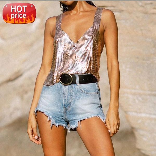 v neck slim metal sequins camisole 2021 shiny solid sleeveless spaghetti strap fashion celebrity nightclub party camis #dw5h, White