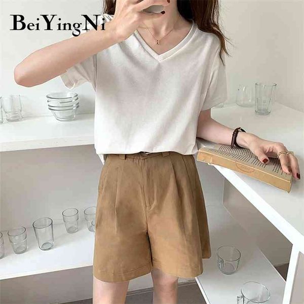 v-neck t-shirts female streetwear summer short sleeve slim t shirt women plain white tee shirts casual clothes 210506, White;black
