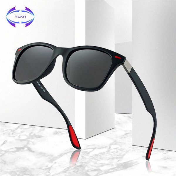 vcka brand design classic polarized sunglasses men women driving square frame eyewear sun glasses male goggle uv400 gafas de sol, White;black