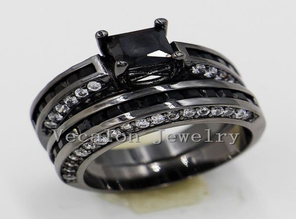 vecalon 2016 brand new wedding band ring set for women 2ct black cz diamond 10kt black gold filled female engagement ring7051815, Slivery;golden