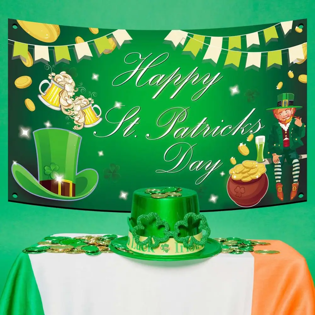 Irish Day Banner Cartoon Pattern Festive Decorative Gift Irish Day Happy St. Patricks Day Poster Hanging Banner Party Supplies