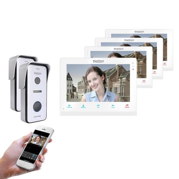 video door phones tmezon wireless/wifi smart ip doorbell intercom system ,10 inch+3 inch monitor with 2x720p wired phone camera