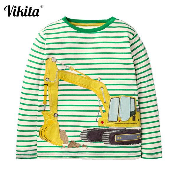 vikita brand boys car appliqued t shirts kids autumn spring long sleeve 100% cotton and tees kids casual clothes q0112, Blue