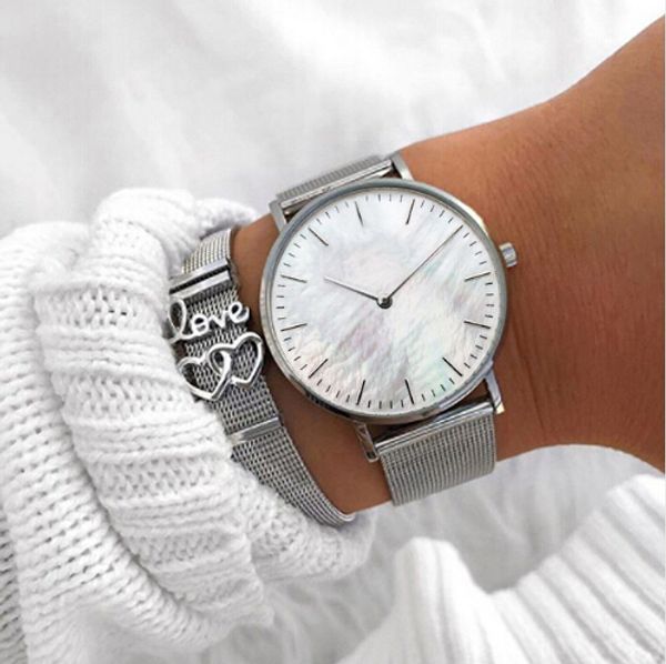 vinnie design jewelry stainless steel keeper mesh bracelet set with wristwatch, Golden;silver