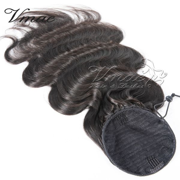 vmae indian hair 140g natural color 12 to 26 inch body wave ponytail human hair extensions, Black