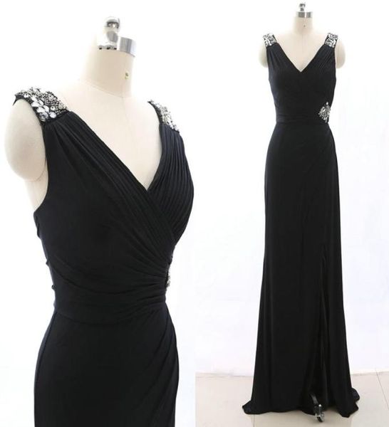 vneck pleats peplum formal dresses evening 2022 rhinestone beaded chiffon side split prom dress long special occasion dress for w7505810, Black;red