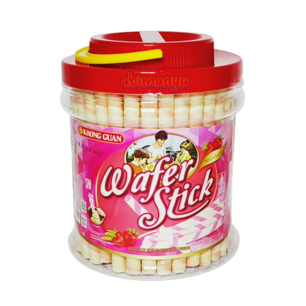 wafer stick isi krim rasa stroberi kemasan toples