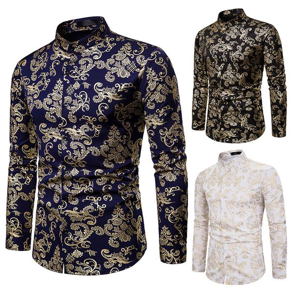 autumn nightclub casual men's fashion collar shirt men's fashion stamping printing long sleeve shirt men men, White;black